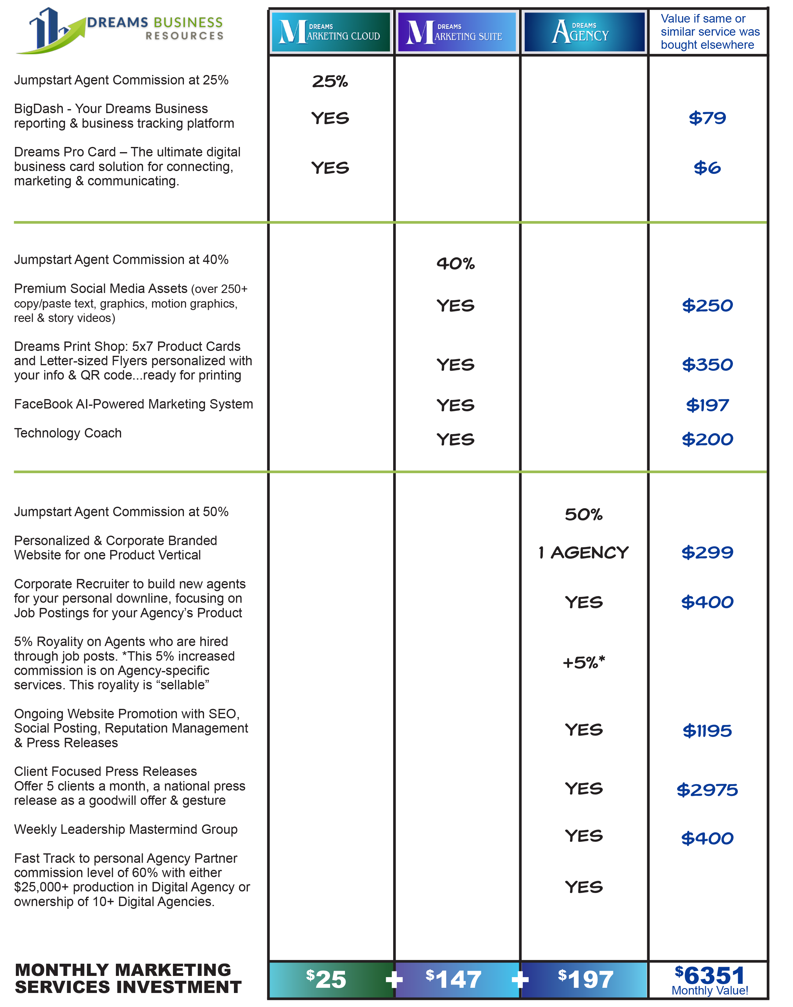 Dreams Marketing Packages